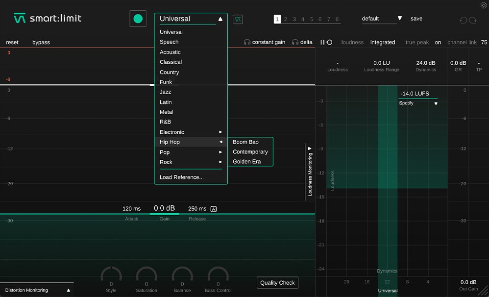 smart:limit kannst du als besonders fortgeschrittenes Analysetool mit sowohl Lautheits- als auch Dynamiküberwachung einsetzen. Der Loudness Analyzer ermöglicht es dir, aus über 20 Lautheitsstandards und Vorgaben von Streamingdiensten zu wählen, sodass du sicherstellen kannst, dass dein Audiomaterial das richtige Level erreicht – sei es bei der Vorbereitung deines Masters für Apple Music oder für den Soundtrack einer Werbekampagne. Ein weiterer großer Pluspunkt von smart:limit ist sein ausgefeiltes Distortion-Monitoring. Es erleichtert dir die Suche nach unerwünschten Artefakten, die durch das Limiting entstehen könnten und die du möglicherweise nicht durch bloßes Zuhören erkennen kannst.