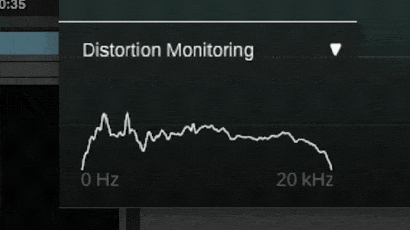 Verwende smart:limit’s Verzerrungsmonitoring um ein Auge auf die Menge an Verzerrung zu haben, die in deinem Signal vorkommt. Die roten Bereiche weisen auf Verzerrungen in unterschiedlichen Frequenzbereichen hin. Für Genres wie Rock oder Pop wird eine gewisse Menge an Verzerrung erwartet, wenn ein Limiter verwendet wird. Jedoch können hohe Verzerrungswerte eventuell als ungewollte Artefakte hörbar werden. Wenn du viel Verzerrung siehst, kann es helfen, das Ausmaß des Limitings zu reduzieren.