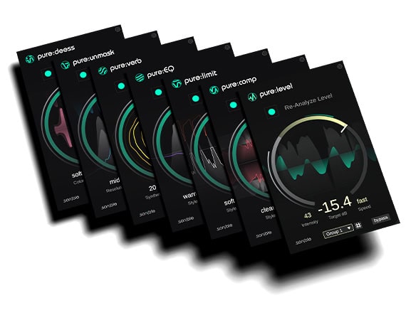 pure:EQ, pure:limit, pure:deess pure:comp, pure:unmask, pure:level und pure:verb wurden mit Fokus auf einen möglichst problemlosen Workflow für Kreative entwickelt und bieten professionellen Sound im kompakten Design.